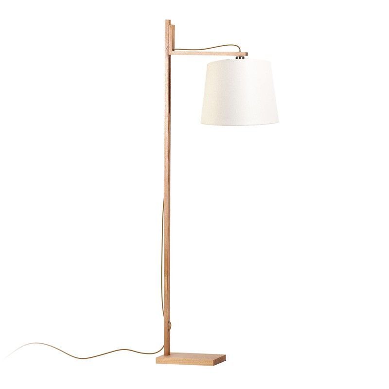 Lámpara de pie GARDENIA Lumiere con estructura de madera natural y pantalla blanca, ideal para salones y espacios de lectura. Diseño minimalista y funcional con brazo ajustable para dirigir la luz según necesites. Combina elegancia y comodidad en tu hogar.