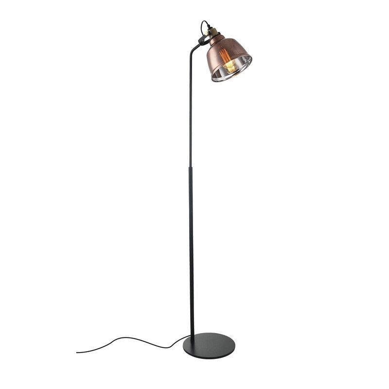 Lámpara de pie ML8021M-TCP Lumiere con diseño industrial vintage, ideal para salones y espacios modernos. Estructura metálica negra y cabezal en acabado cobre que aporta calidez. Base circular estable y cable negro integrado. Perfecta para crear ambientes acogedores con luz direccional.