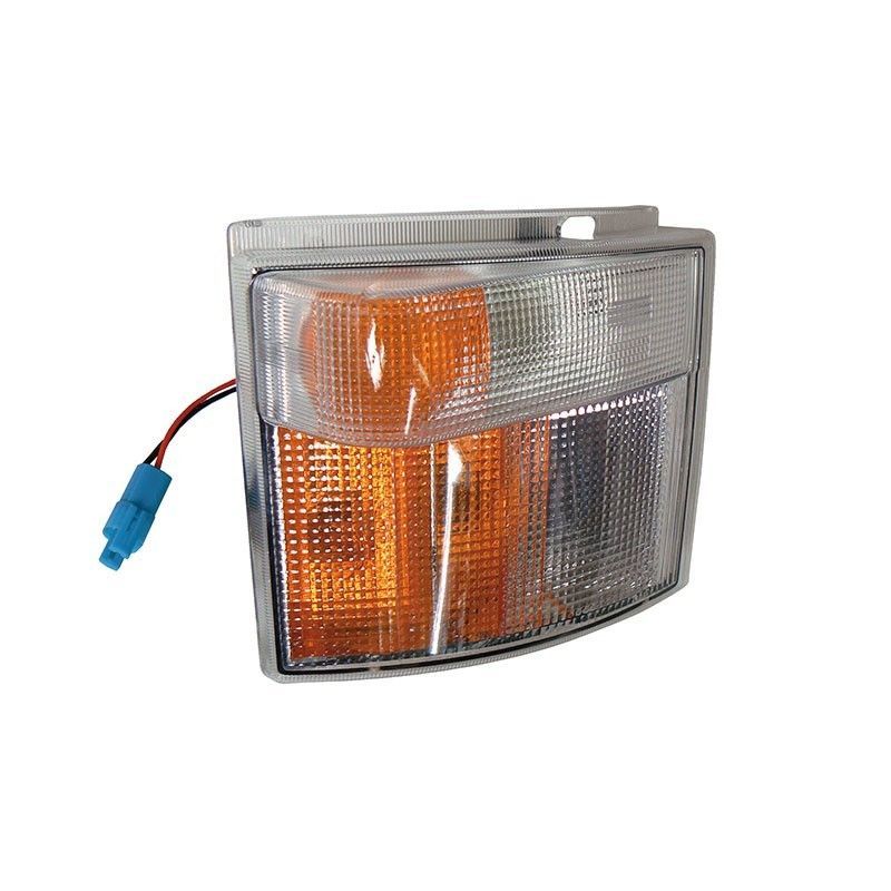 Luces para vehículos motorizados Scania Piloto Delantero Derecho, con diseño curvo y luz naranja para mejorar la visibilidad y seguridad en carretera.