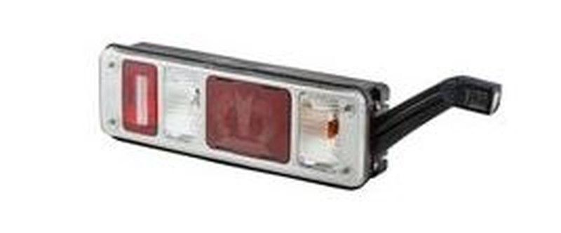 Piloto trasero derecho Krone híbrido con cuerno, diseñado para vehículos motorizados. Combina luces rojas y blancas en un cuerpo resistente de plástico y metal, con conector flexible para una instalación sencilla. Ideal para mejorar la visibilidad y seguridad en carretera. Calidad duradera y fácil montaje.