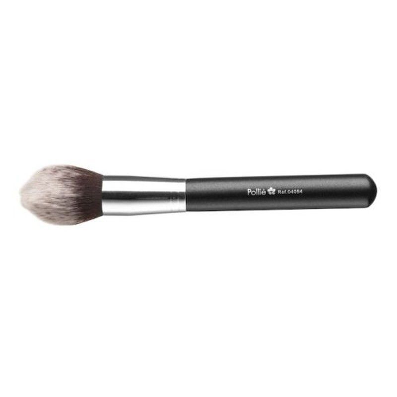 Pincel Kabuki cónico R-4094 de Pollie, ideal para aplicar polvos, bronceadores o base de maquillaje con acabado natural. Con mango negro mate y empuñadura metálica, su pelo sintético suave y denso permite una aplicación uniforme y precisa. Perfecto para maquillaje diario o profesional.
