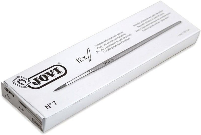 Caja de 12 pinceles artísticos Jovi, punta redonda nº7, ideales para pintura fina y detalles precisos. Con mango metálico y cerdas de alta calidad, perfectos para artistas y aficionados. Incluye embalaje profesional para conservar los pinceles en óptimas condiciones.