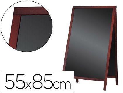 Pizarra negra Liderpapel con caballete doble cara, ideal para oficinas, escuelas o negocios. Fabricada con marco de madera de acabado marrón oscuro y superficie negra resistente para rotuladores tipo tiza. Dimensiones 55x85 cm. Perfecta para mensajes, anuncios o presentaciones. Fácil de colocar y usar en cualquier espacio.