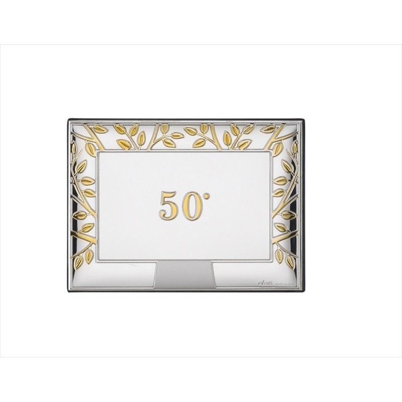 Placa conmemorativa de 9x13 cm con diseño 'Árbol de la Vida' en acabado plateado y detalles dorados. Ideal para celebrar 50 años de matrimonio, aniversario o logro. Fabricada en metal de alta calidad, con un elegante diseño de hojas y el número '50°' en relieve. Perfecta para decorar o regalar en ocasiones especiales.