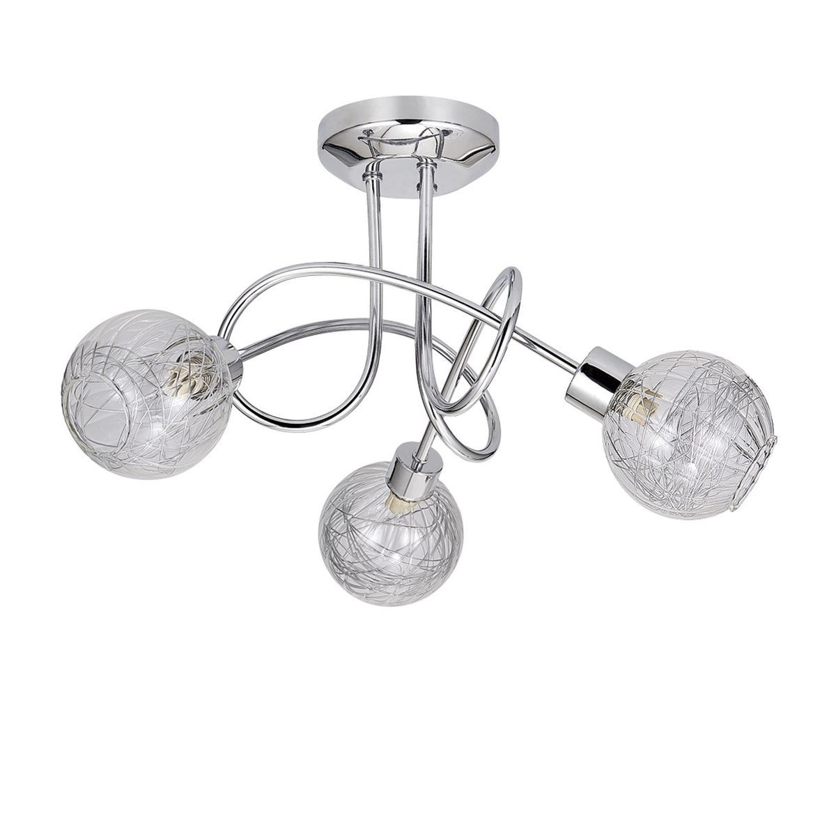 Plafón de techo con 3 focos esféricos de vidrio texturizado y estructura metálica cromada. Diseño moderno y elegante ideal para salones, comedor o dormitorios. Fácil instalación y acabado brillante que aporta luz cálida y estilo contemporáneo a cualquier espacio.