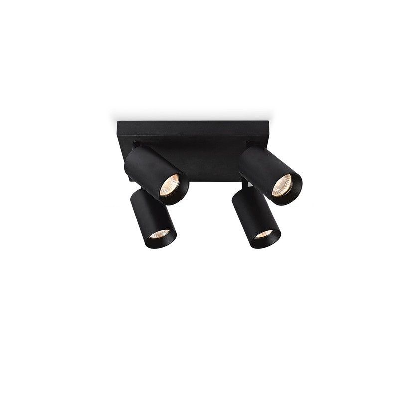 Plafón de techo MX5015-BK de Lumiere, con cuatro focos orientables y acabado negro mate. Ideal para iluminar espacios como salones, comedor o pasillos con estilo moderno. Fabricado en metal de alta calidad, ofrece una luz direccional ajustable para crear ambientes acogedores y funcionales. Diseño minimalista y versátil para cualquier decoración con