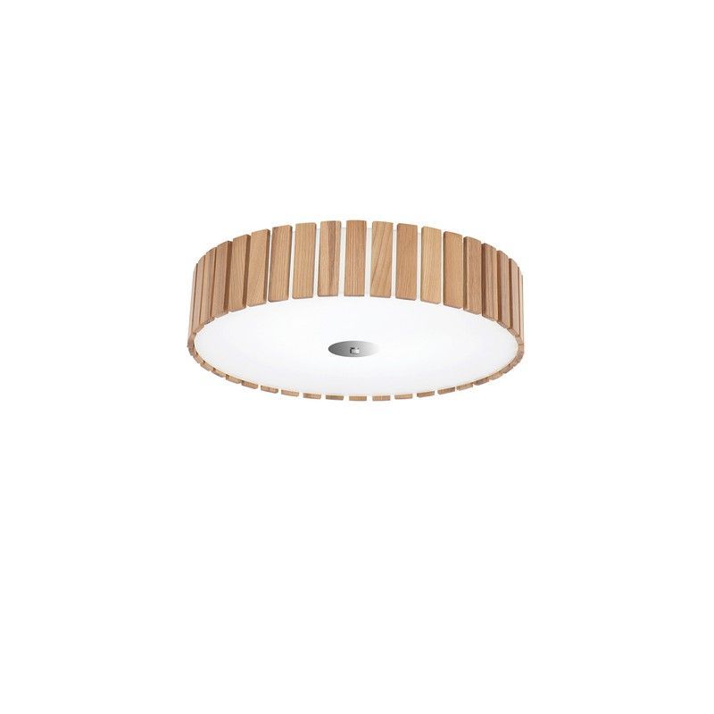 Plafón de techo CLOE Lumiere con diseño moderno y elegante, ideal para espacios como salones, dormitorios o cocinas. Fabricado con listones de madera y difusor blanco opalino, ofrece una iluminación cálida y uniforme. Su forma circular y perfil bajo lo hacen perfecto para techos bajos. Combina estilo natural con funcionalidad.