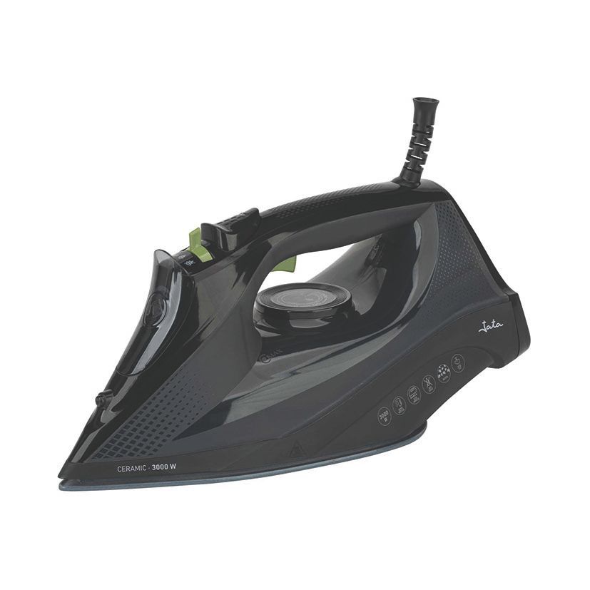 Plancha de vapor cerámica Jata de 3000 W, ideal para eliminar arrugas con eficacia y rapidez. Con base cerámica antiadherente y diseño ergonómico, ofrece un deslizamiento suave sobre tejidos. Incluye panel de control táctil y salida de vapor potente. Perfecta para uso diario en el hogar.