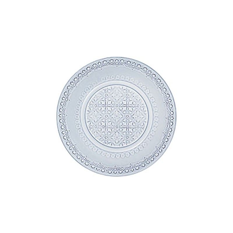 Plato de postre de loza en blanco envejecido, ideal para servir dulces o aperitivos con estilo clásico. Con diseño decorativo en relieve, borde con motivos circulares y centro geométrico, aporta elegancia a cualquier mesa. Perfecto para ocasiones especiales o uso diario en cocina y comedor.