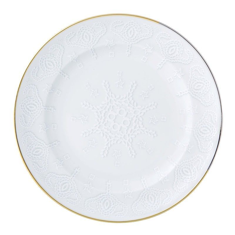 Plato de postre de porcelana en blanco y dorado, 21,6 x 21,6 x 2,6 cm | Paseo