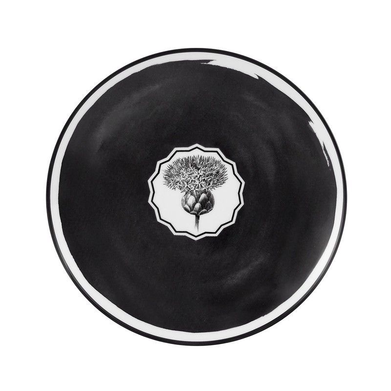 Plato de postre de porcelana en negro con elegante diseño herbario en blanco, ideal para decorar tu mesa con estilo. Con un diámetro de 23,1 cm, combina sofisticación y funcionalidad. Perfecto para postres, entrantes o como pieza decorativa en tu vajilla. Diseño exclusivo de la colección Herbariae Parade.