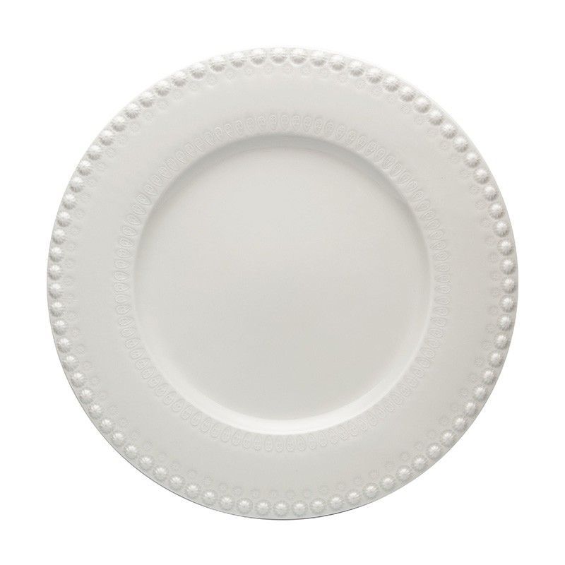 Plato de presentación de loza en blanco, ideal para servir postres, entrantes o como plato decorativo en mesas elegantes. Con un diseño clásico y sofisticado, su borde con perlas en relieve aporta un toque de distinción. Fabricado en loza de alta calidad, resistente y fácil de limpiar. Perfecto para ocasiones especiales o uso diario en hogares con