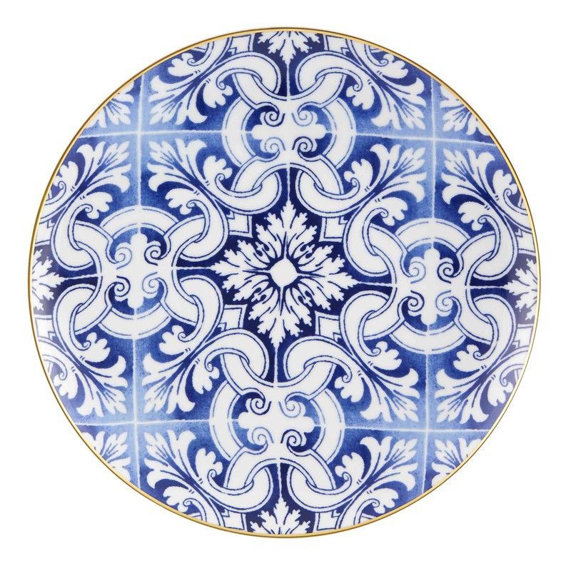 Plato de presentación de porcelana y decoración de azulejo, Ø 33x3,3 cm | Transatlántica