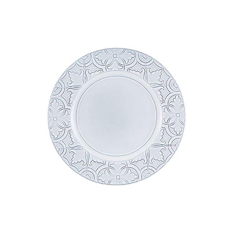 Plato llano de loza en blanco envejecido, ideal para decorar tu mesa con estilo clásico y elegante. Con diseño floral en relieve en el borde, combina perfectamente con vajillas tradicionales o modernas. Perfecto para comidas diarias o ocasiones especiales. Medidas: 28 x 28 x 2,7 cm. Fabricado en loza de calidad para uso diario.