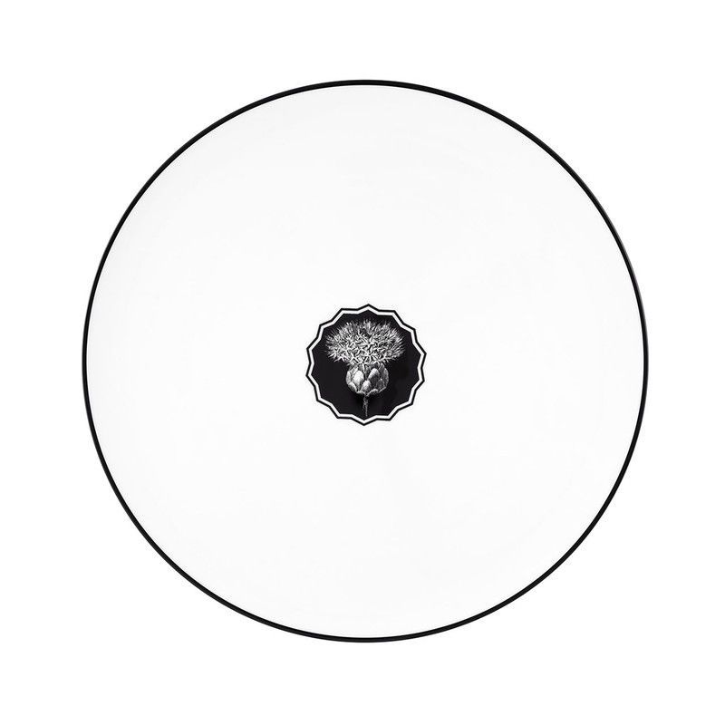 Plato de presentación de porcelana blanca de la colección Herbariae Parade, con diseño elegante en el centro en negro. Ideal para servir platos principales o postres con estilo. Diámetro de 33,7 cm, acabado fino y resistente. Perfecto para comidas especiales o uso diario en casa.