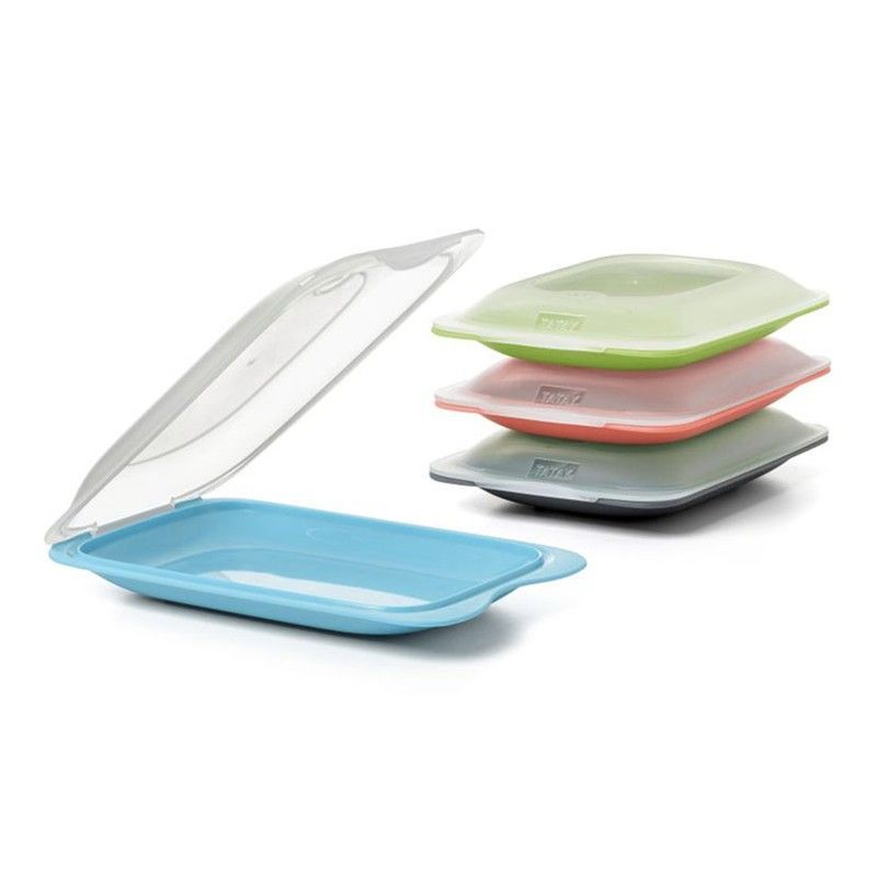 Juego de porta-embutido Fresh Mini de Tatay en colores surtidos, ideal para conservar embutidos y alimentos en la nevera. Fabricado en plástico resistente y seguro, con tapas transparentes y bisagras integradas para un cierre hermético. Diseño compacto y apilable, perfecto para ahorrar espacio en el frigorífico. Ideal para uso diario en cocina.