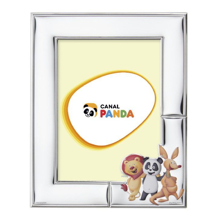 Marco para fotos de acero inoxidable con diseño infantil de Canal Panda y sus amigos. Ideal para niños, con acabado plateado brillante y espacio para fotos de 13x18 cm. Incluye ilustraciones coloridas de los personajes favoritos de los más pequeños. Perfecto para decorar habitaciones infantiles o como regalo especial.