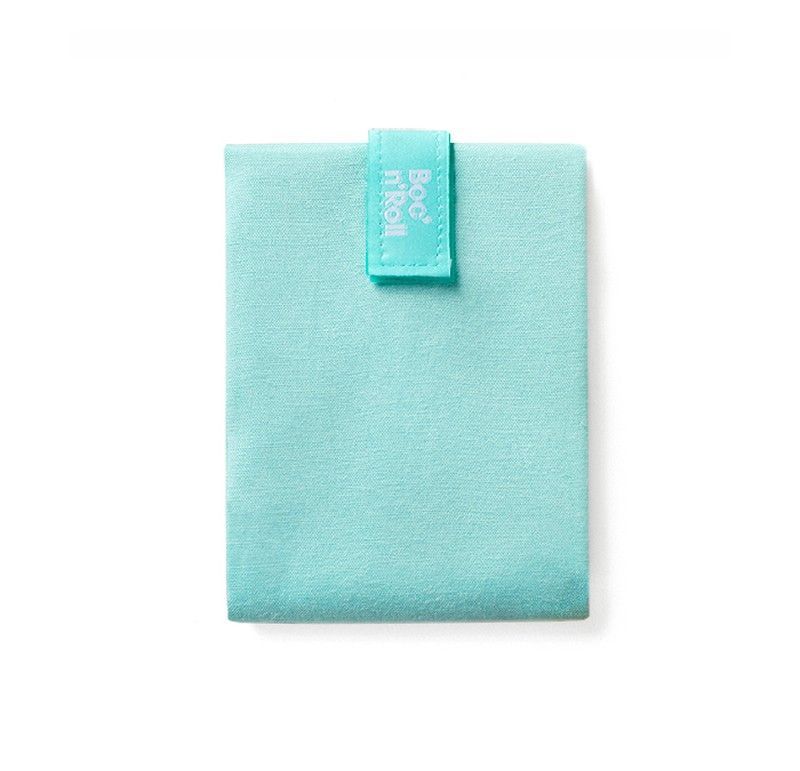 Portabocadillo Boc'n'Roll Nature en color menta, fabricado en algodón suave y resistente. Ideal para llevar el almuerzo o bocadillos de forma práctica y ecológica. Su cierre de velcro asegura el contenido y su diseño minimalista lo hace perfecto para el día a día. Perfecto para niños y adultos que buscan una alternativa sostenible al plástico.