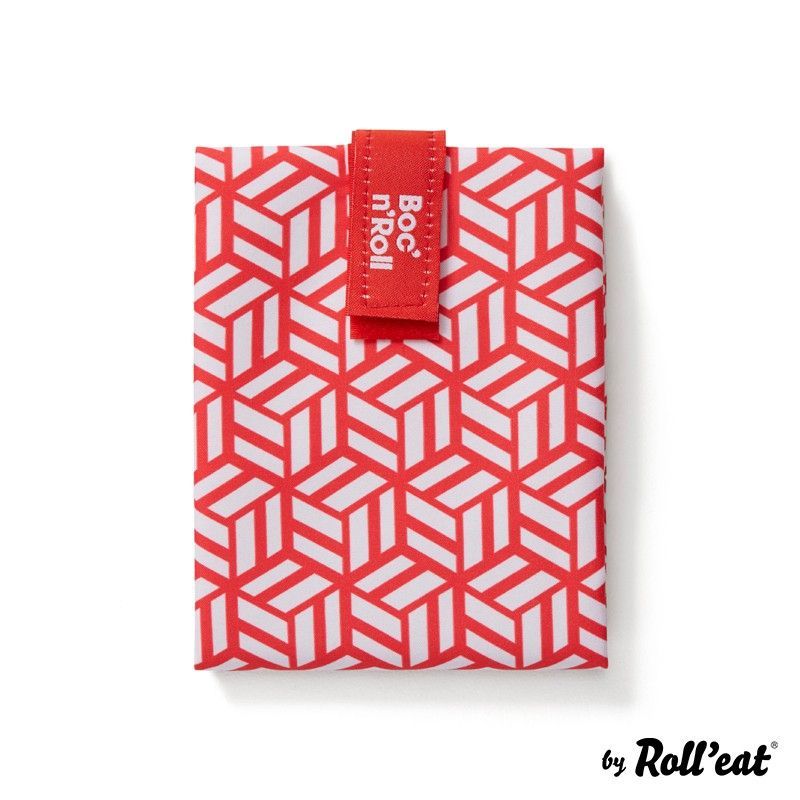 Portabocadillo Boc'n'Roll Tiles Rojo, ideal para llevar el almuerzo con estilo y comodidad. Fabricado en poliéster resistente, presenta un diseño geométrico en rojo y blanco que combina funcionalidad y estética. Perfecto para el día a día, viajes o trabajo, mantiene tus alimentos frescos y organizados. Incluye cierre con solapa para mayor seguridad