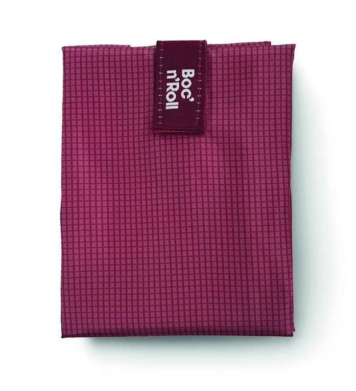 Portabocadillos Boc'n'Roll Active en color granate, fabricado en poliéster resistente con textura cuadriculada. Ideal para llevar alimentos frescos al trabajo o al colegio, con un diseño elegante y funcional. Perfecto para mantener tus bocadillos y snacks en perfectas condiciones durante todo el día.