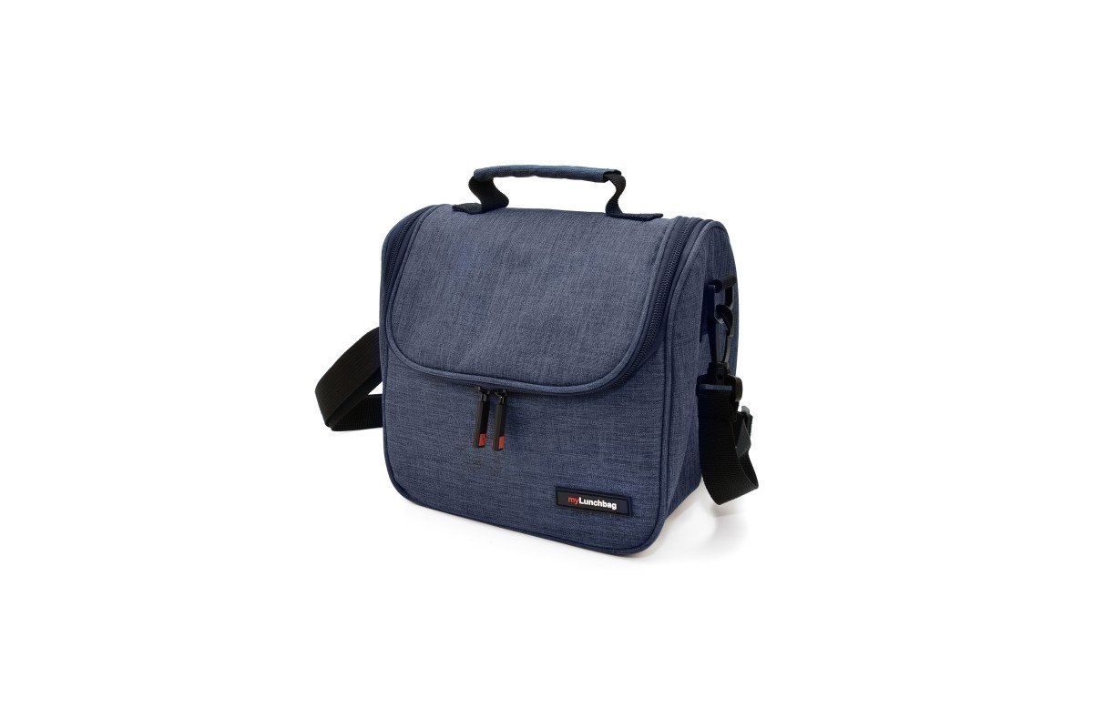 Portacomida Lunchbag Case en color azul jaspeado, fabricado en lona resistente y duradera. Ideal para llevar el almuerzo o merienda con estilo y comodidad. Incluye asa superior y correa ajustable para el hombro, cierre con cremallera y diseño compacto. Perfecto para el trabajo, la escuela o el día a día.