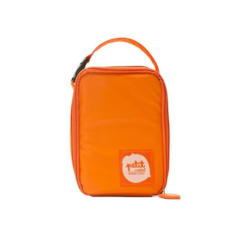 Portacomida lunchbag Petit Valira en color naranja, fabricado en lona resistente y con cierre de cremallera. Ideal para llevar comidas al trabajo, escuela o excursiones. Diseño compacto y funcional con asa para transporte cómodo. Perfecto para mantener tus alimentos frescos y organizados durante el día.