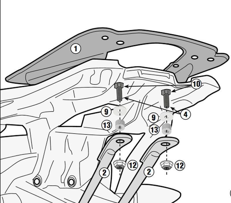 Portaequipajes Givi SR5126 para BMW G310GS 2017, fabricado en acero inoxidable y plástico resistente. Diseñado para una instalación segura y precisa, con sistema de fijación mediante tornillos y arandelas. Ideal para viajes largos y carga adicional en motocicletas. Ofrece durabilidad y estabilidad en cualquier condición de conducción.