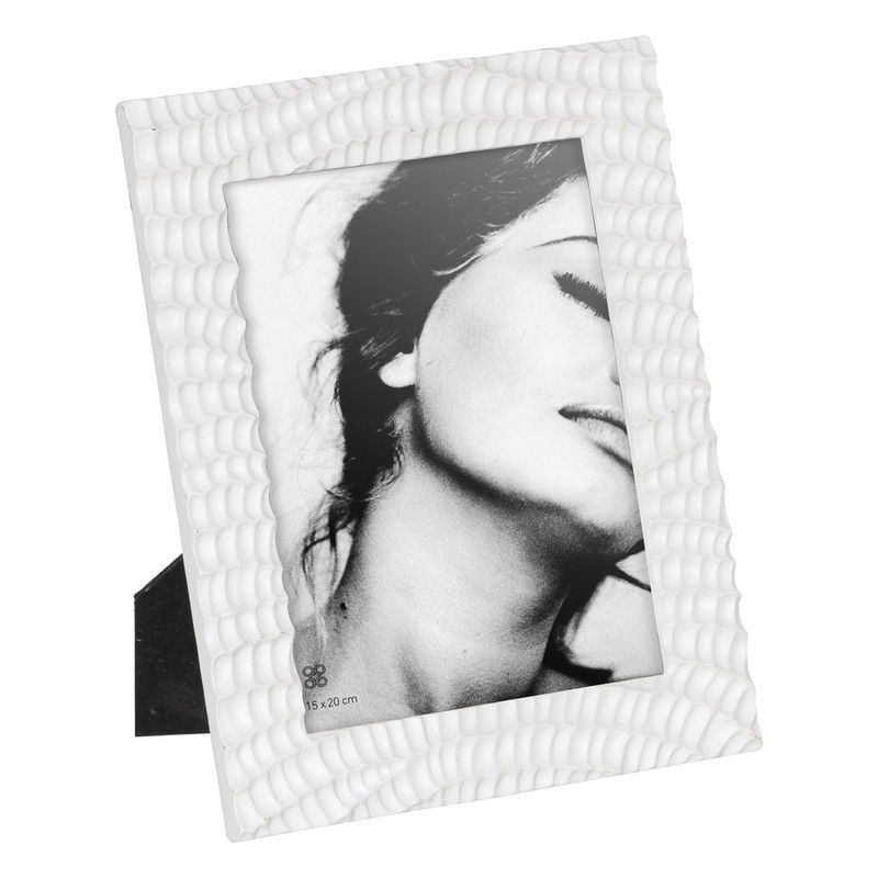 Portafotos 15x20 Blanco Ixia con elegante textura ondulada en relieve, fabricado en plástico de alta calidad. Ideal para decorar tu hogar con estilo y personalidad. Perfecto para exhibir tus mejores recuerdos en cualquier ambiente. Diseño moderno y versátil, fácil de colocar sobre mesas, estanterías o cómodas.
