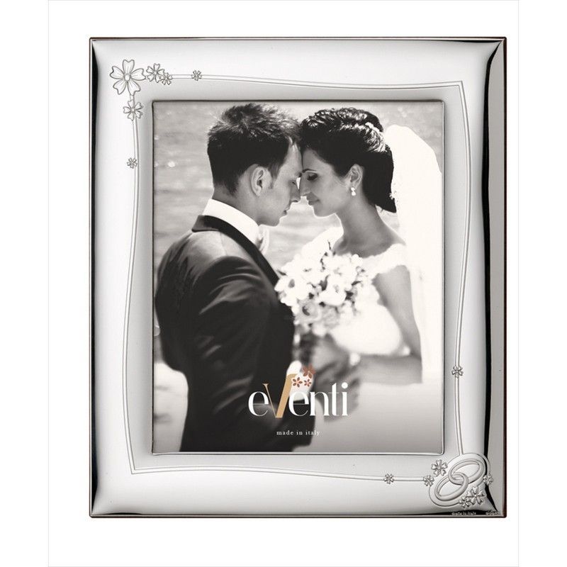 Portafotos Aniversario 13x18cm EV9000/13A Alianzas, con acabado plateado brillante y detalles florales y de anillos entrelazados. Ideal para celebrar bodas o aniversarios, este marco de metal combina elegancia y romanticismo. Perfecto para exhibir momentos especiales en casa o como regalo conmemorativo.