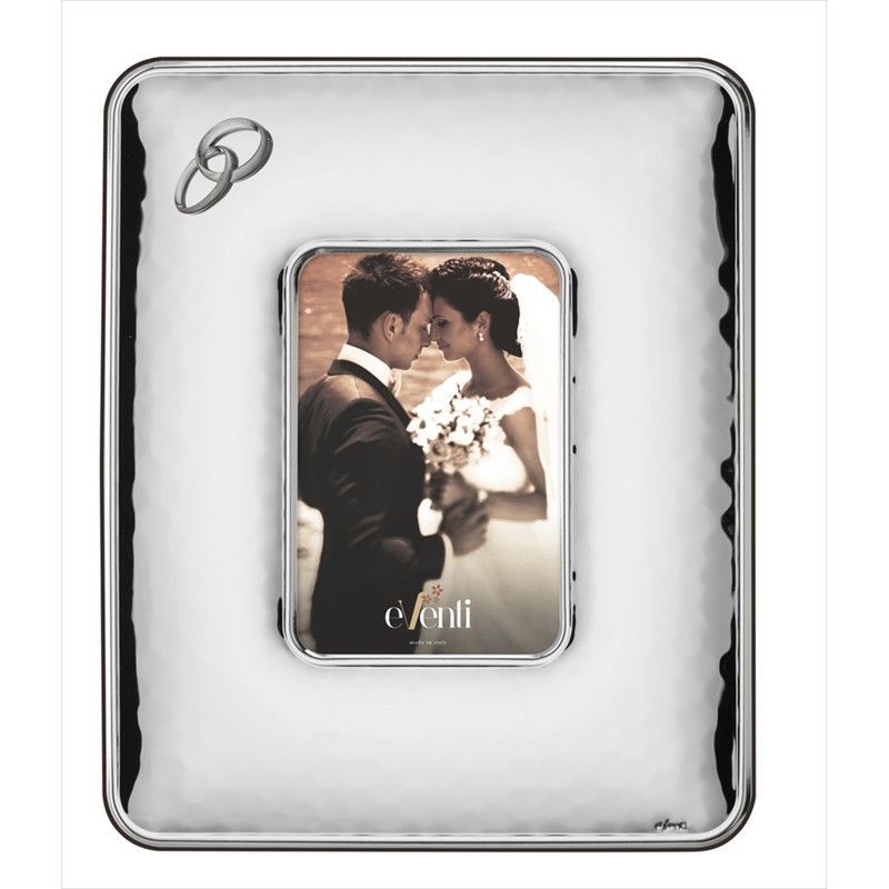 Portafotos Aniversario 15x20cm EV9200/15A Alianzas Martele, ideal para celebrar momentos especiales. Con acabado metálico plateado y fondo blanco texturizado, incluye detalle de anillos entrelazados y diseño elegante con imagen de pareja. Fabricado en acero inoxidable y vidrio, perfecto para decorar tu hogar con estilo y significado.