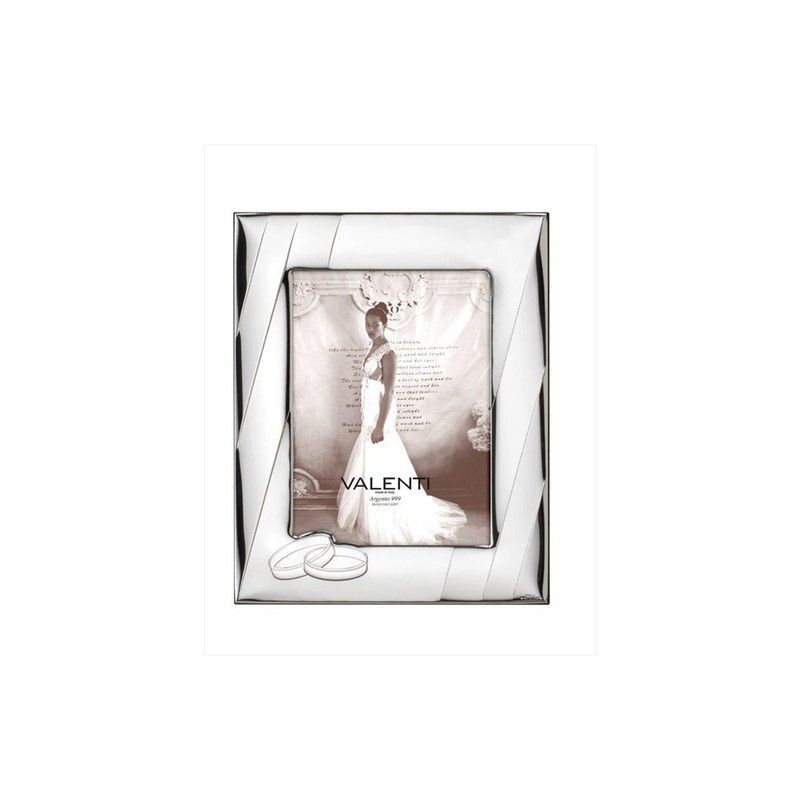 Portafotos Aniversario 18x24cm con diseño elegante en tono plateado y blanco, ideal para celebrar momentos especiales. Incluye decoración con anillos de boda y una imagen central con novia y texto conmemorativo. Perfecto para regalar o decorar el hogar con estilo sofisticado.