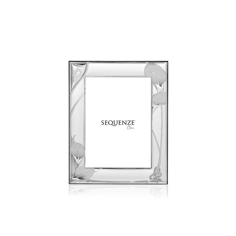 Portafotos Aniversario SQ1161/18 de la línea Zante, con elegante diseño de hojas talladas en metal plateado y cristal transparente. Ideal para decorar tu hogar con fotos de 18x24 cm. Calidad premium y acabado sofisticado para regalos especiales o momentos memorables.