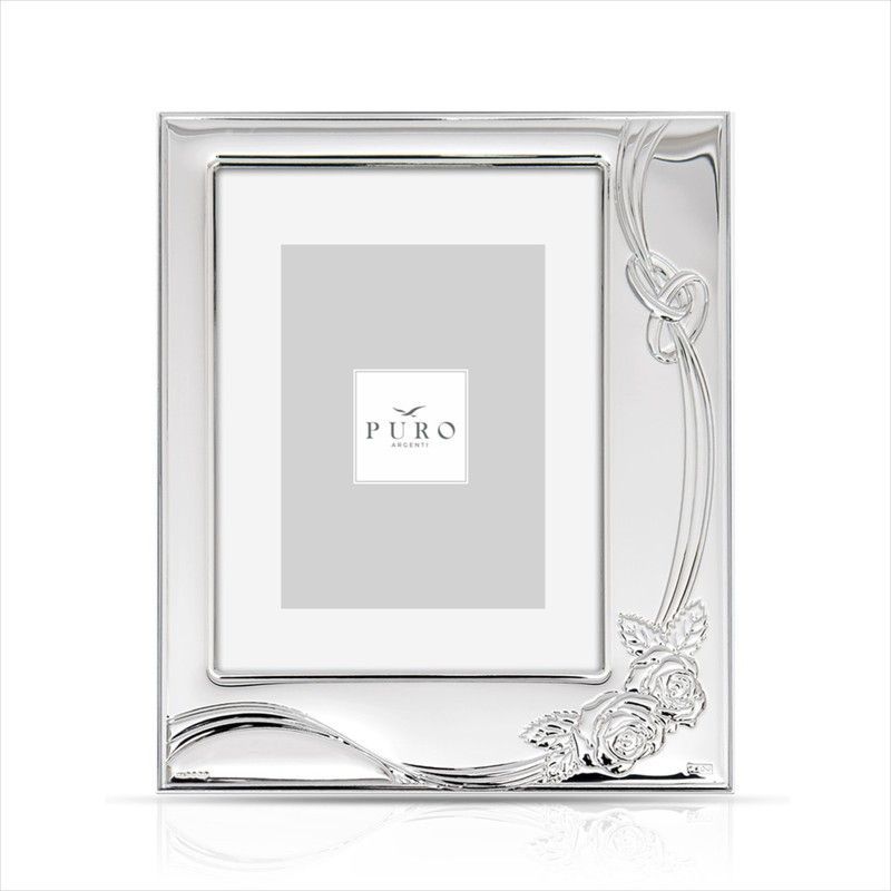 Portafotos Aniversario PU8213/20 de 20x25 cm con elegante diseño en metal plateado, adornado con detalles de rosas y lazos. Ideal para celebrar momentos especiales, su acabado brillante y diseño sofisticado lo convierten en un regalo perfecto para parejas o aniversarios. Fabricado con calidad premium para durabilidad y estilo.