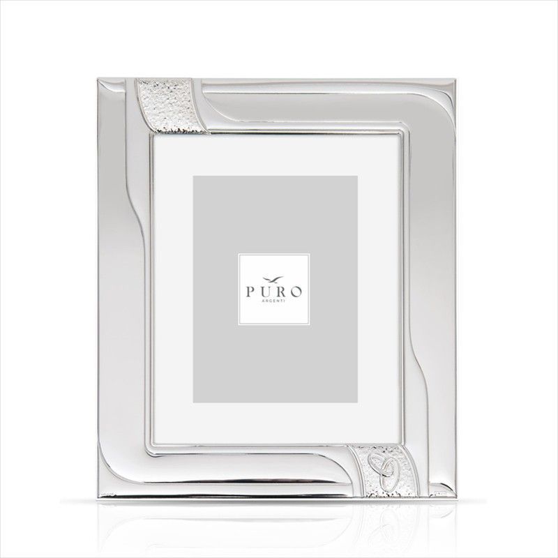 Portafotos Aniversario 20x25 cm PU8231/20 Alianzas, con elegante diseño cuadrado en acero inoxidable plateado. Ideal para celebrar momentos especiales, con acabado brillante y detalles decorativos en las esquinas. Perfecto para regalar o decorar tu hogar con estilo y sofisticación.