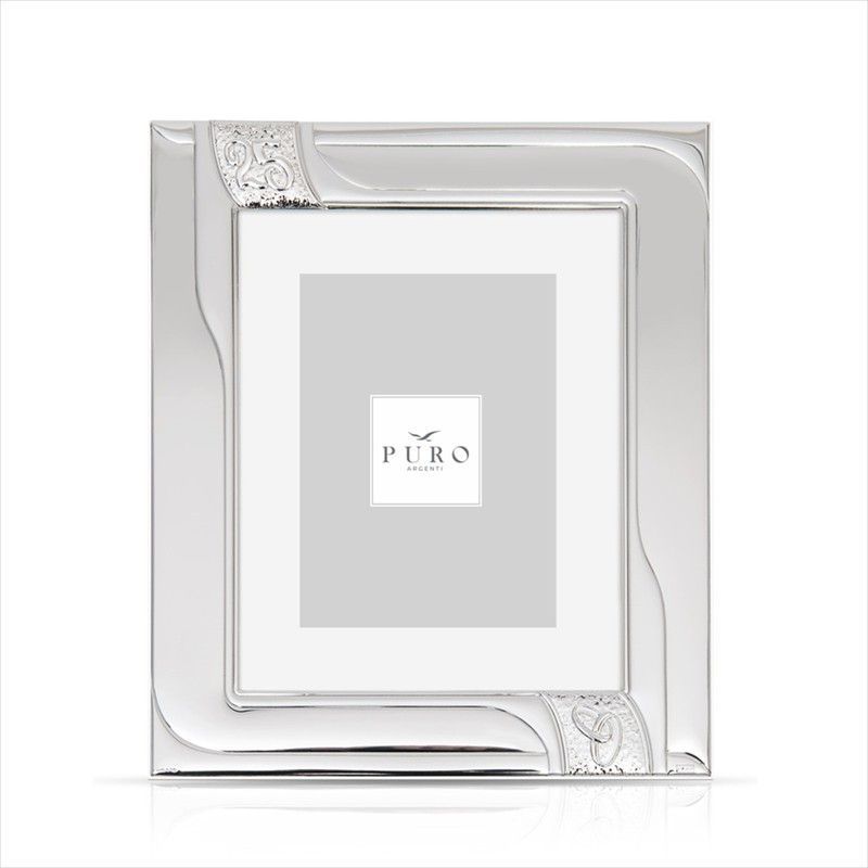 Portafotos Aniversario 20x25 cm PU8233/20 Alianzas 25 Años, ideal para celebrar bodas de plata. Fabricado en metal con acabado plateado brillante y detalles ornamentales en las esquinas, este elegante marco combina diseño clásico y sofisticación. Perfecto para exhibir recuerdos especiales en casa o como regalo conmemorativo.