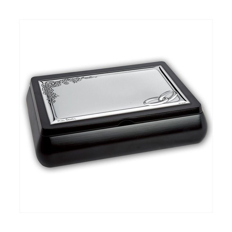 Elegante caja portafotos Pierre Cardin PT5295/8 con diseño de alianzas, ideal para conservar recuerdos especiales. Fabricada con acabado negro y tapa metálica plateada con detalles florales y símbolo de amor. Perfecta para regalar en bodas o aniversarios.