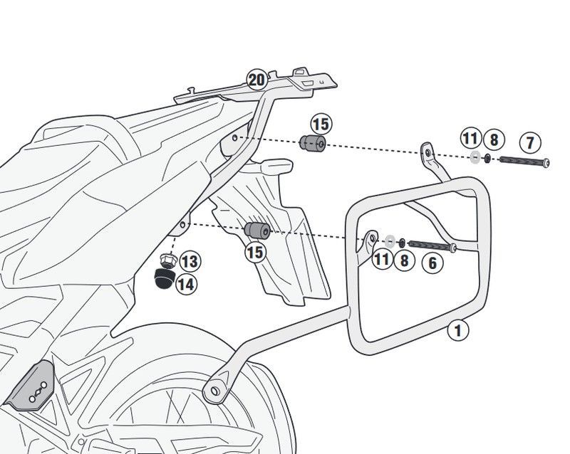 Portamaletas lateral para Honda CRF1100L Africa Twin 2020, fabricado en acero inoxidable resistente y con componentes de plástico para mayor durabilidad. Diseño específico para montaje seguro y fácil instalación en la motocicleta, ideal para viajes largos y carga adicional. Incluye todos los elementos necesarios para una fijación segura y precisa.