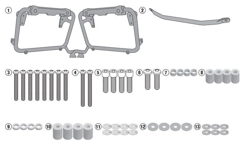 Portamaletas lateral Givi PL3112CAM para Suzuki DL 650 V-Strom 2017-2021. Conjunto completo de piezas de acero inoxidable y plástico para montaje seguro y duradero. Ideal para motociclistas que necesitan transporte seguro de equipaje lateral. Fácil instalación y diseño resistente para uso diario y viajes largos.