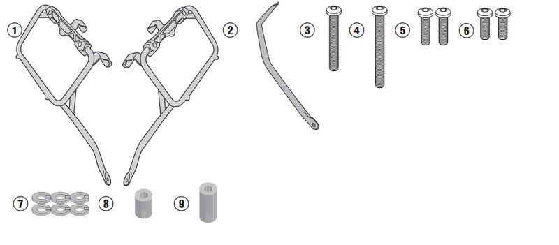 Portamaletas laterales Givi PL1161CAM para Honda CRF1000L Africa Twin Adventure Sports y Africa Twin 2018-2019. Fabricado en acero inoxidable de alta resistencia, ofrece una instalación segura y duradera para equipaje lateral. Ideal para viajes largos y aventuras off-road. Incluye todos los componentes necesarios para montaje directo.