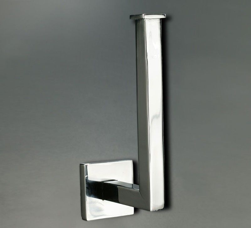 Portarrollos de baño con diseño angular recto, fabricado en acero inoxidable de alta calidad. Ideal para baños modernos y minimalistas, ofrece un acabado pulido y brillante que combina elegancia y funcionalidad. Fácil instalación en pared, resistente a la humedad y al óxido. Perfecto para mantener el rollo de papel higiénico organizado y al alcance