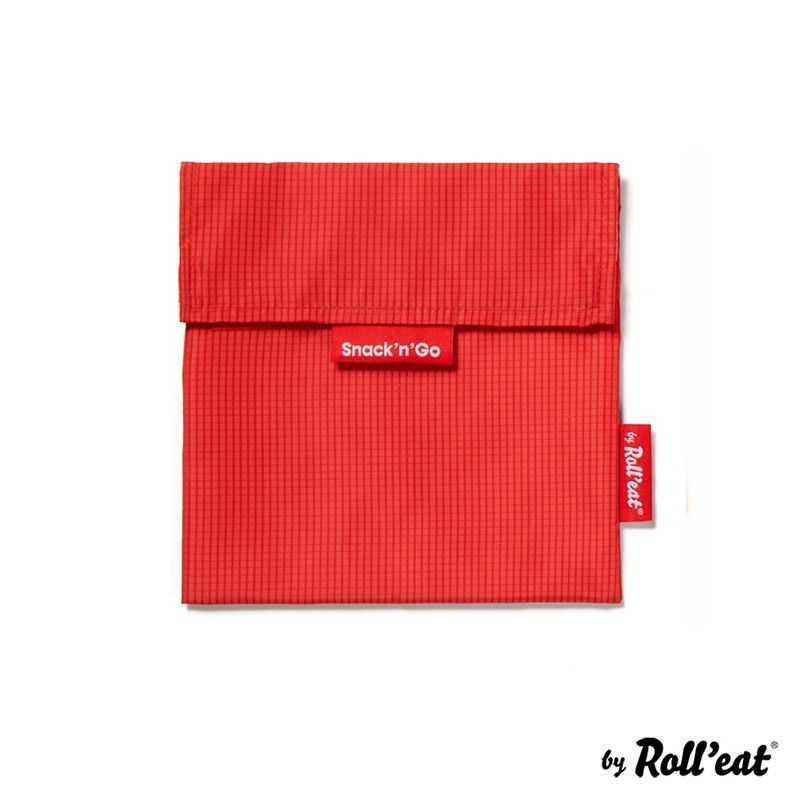 Portasnack Snack'n'Go Active en color rojo, fabricado en lona resistente con diseño de cuadros finos. Ideal para llevar snacks, frutas o bocadillos de forma higiénica y práctica. Cierre tipo solapa para mayor seguridad. Perfecto para el colegio, la oficina o actividades al aire libre. Reutilizable y fácil de limpiar.