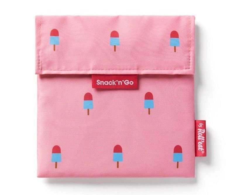 Portasnack Snack'n'Go Icons Helado, bolsa reutilizable en color rosa con estampado de helados, ideal para llevar snacks o alimentos al trabajo, escuela o viajes. Fabricada en poliéster resistente y con cierre seguro. Perfecta para mantener tus alimentos frescos y organizados con estilo.