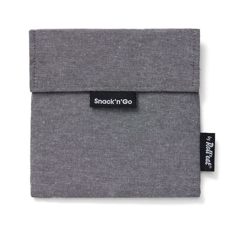 Portasnack Snack'n'Go Nature en color gris, fabricado en lona resistente y duradera. Ideal para llevar snacks, frutas o bocadillos de forma práctica y ecológica. Su diseño compacto y cierre tipo solapa lo hacen perfecto para el día a día, el trabajo o el colegio. Reutilizable y fácil de limpiar, es una opción sostenible para quienes cuidan el medio