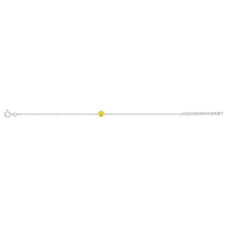 Pulsera de plata para mujer con diseño minimalista y elegante. Cadena fina con cierre de mosquetón y detalle central de círculo calado en color amarillo con forma de cara sonriente. Ideal para looks diarios o como complemento sutil. Hecha en plata de alta calidad, perfecta para quienes buscan joyería con toque divertido y sofisticado.