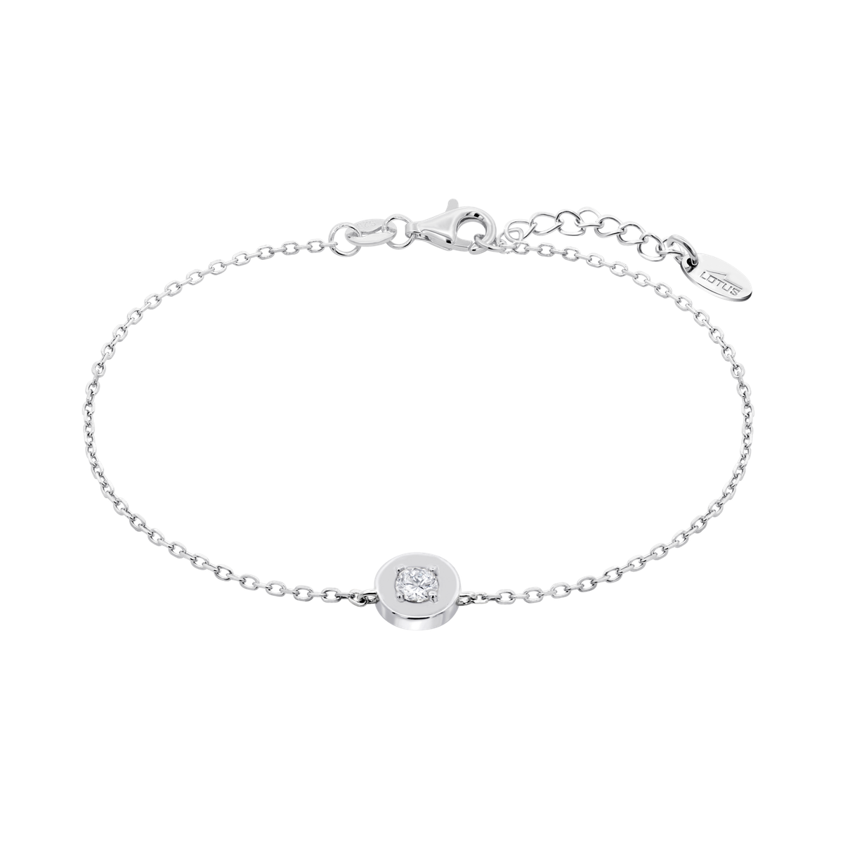 Pulsera Lotus LP3850-2/1 en plata con detalle circular y circonita, ideal para mujeres que buscan joyería fina y elegante. Diseño minimalista con cadena de eslabones finos y cierre seguro. Perfecta para usar diariamente o como complemento en ocasiones especiales. Calidad y estilo en cada detalle.