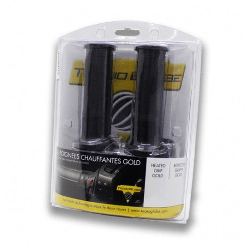 Puños calefactables Tecno Globe de 130mm, ideales para motociclistas que buscan comodidad en climas fríos. Diseñados para montar en manillar, ofrecen un agarre seguro y cálido. Empaquetados en blister transparente con etiquetado multilingüe. Perfectos para uso en motos de todo tipo, garantizando mayor control y confort durante la conducción en invi