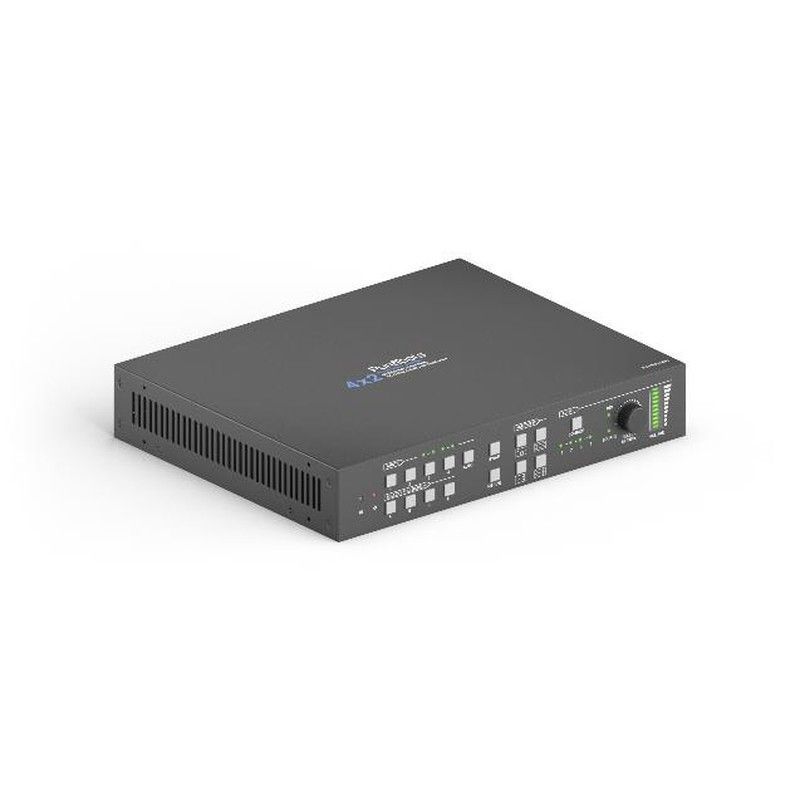 Presentador multiformato escalador Purelink ideal para profesionales de audiovisuales y sistemas de video. Diseño compacto y robusto en gris, con panel de control intuitivo y ventilación eficiente. Permite la conversión y escalado de señales de video entre diferentes formatos. Perfecto para instalaciones de AV, salas de conferencias y entornos de e