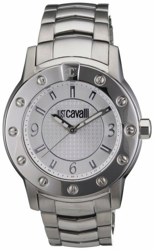 Reloj de pulsera Just Cavalli modelo R4888, colección Noble, ideal para hombres que buscan estilo y elegancia. Fabricado en acero inoxidable con esfera blanca texturizada y detalles en números romanos y árabes. Correa robusta y diseño moderno con bisel decorado con tornillos. Perfecto para looks casuales o semi-formales.