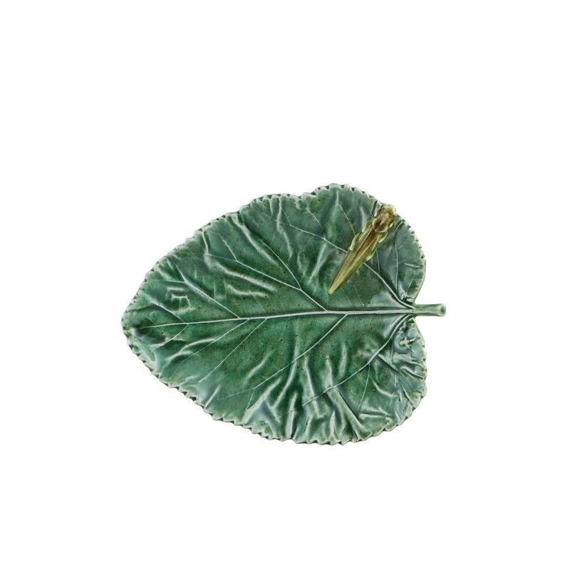 Rabanera de loza en verde con diseño de hoja natural, ideal para servir en la mesa con estilo rústico y elegante. Hecha con acabado mate y detalles venosos, aporta un toque de naturaleza a tu cocina o comedor. Perfecta para servir verduras, frutas o como centro de mesa decorativo. Medidas: 17,5 x 14 x 3,8 cm.