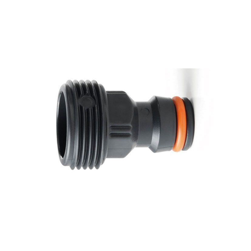 Racor de conexión para manguera macho de 3/4 pulgadas, fabricado en plástico resistente. Ideal para sistemas de riego en jardín, fácil instalación y conexión segura. Diseño con anillo naranja para mayor agarre y durabilidad. Perfecto para conectar mangueras y accesorios de riego de forma rápida y eficiente.